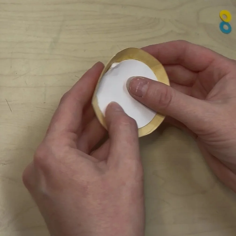 Glue the shimmery silver spoon shape to the back of the mirrored silver paper. The spoon should be facing outward, and so should the mirrored silver. (If it makes it easier, you can start by trimming off some of the excess paper around the spoon shape first.)