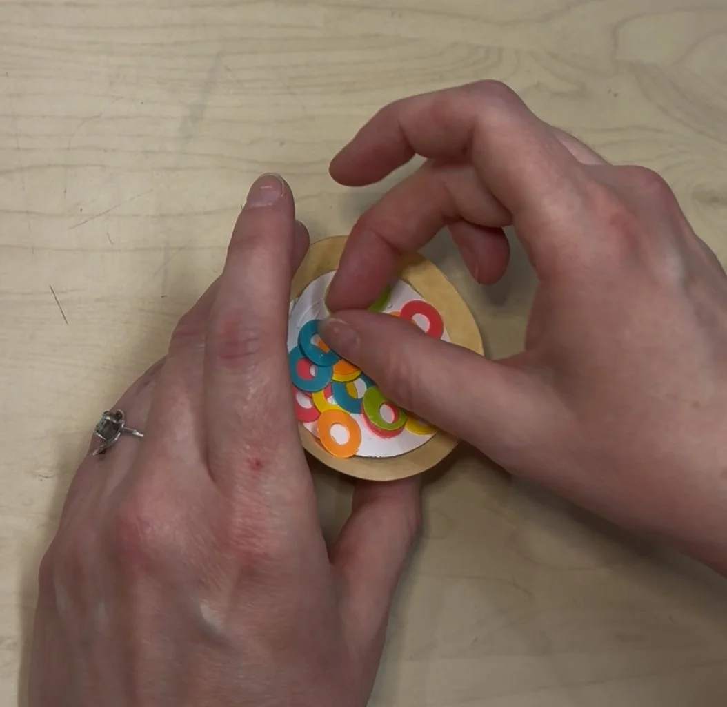 If you would like to add glitter or glitter glue to the cereal, now is a great time.